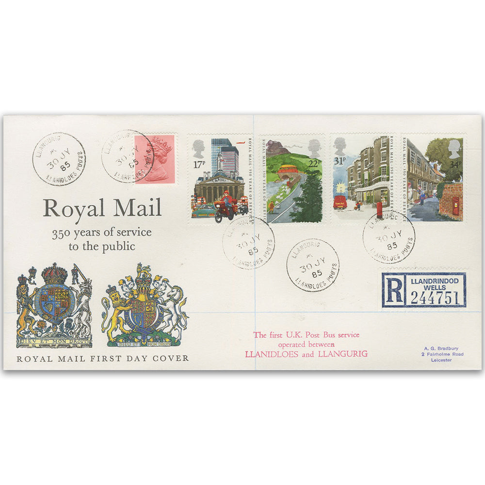 1985 350 Years of Royal Mail RM FDC - Llangurig CDS