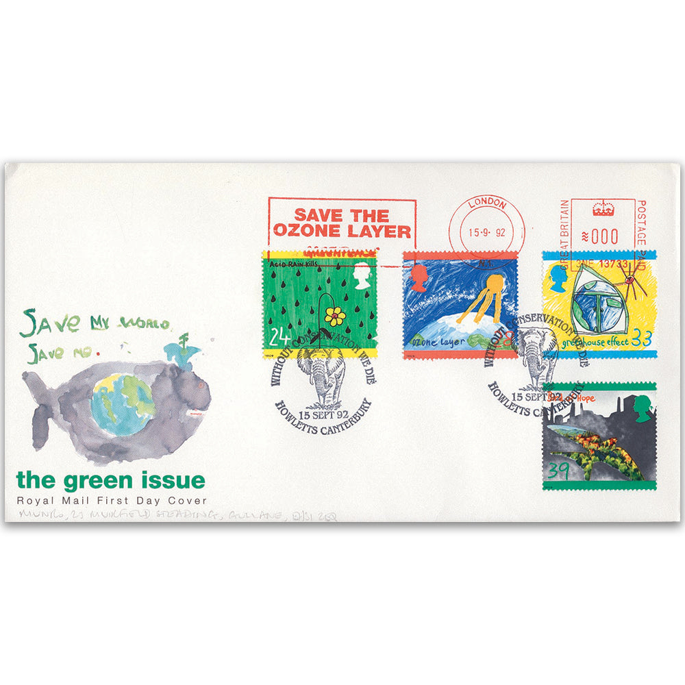 1992 Protection of the Environment - Royal Mail FDC - Save the Ozone Layer Metermark