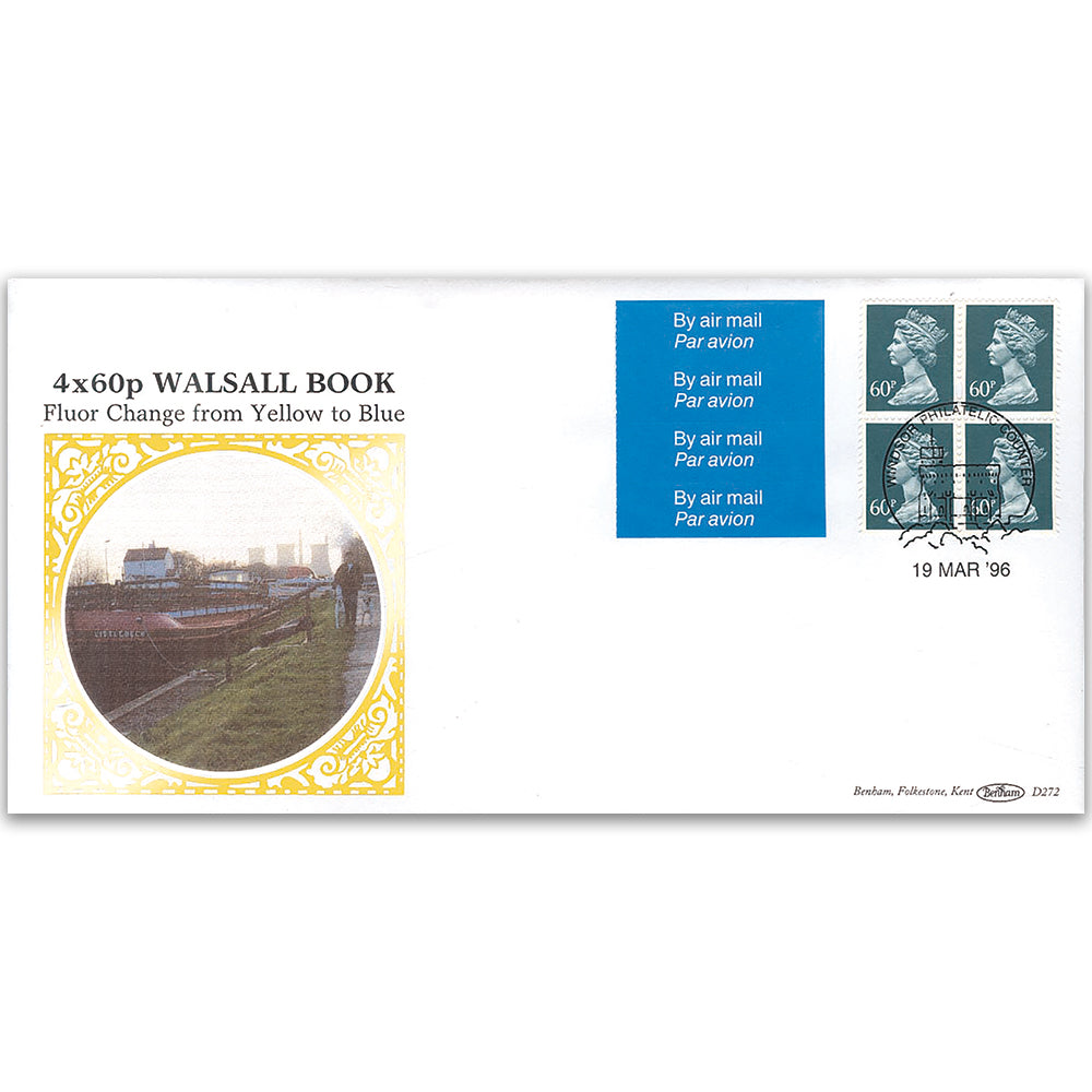 1996 4x60p Walsall Book Blue Fluor - Windsor Handstamp