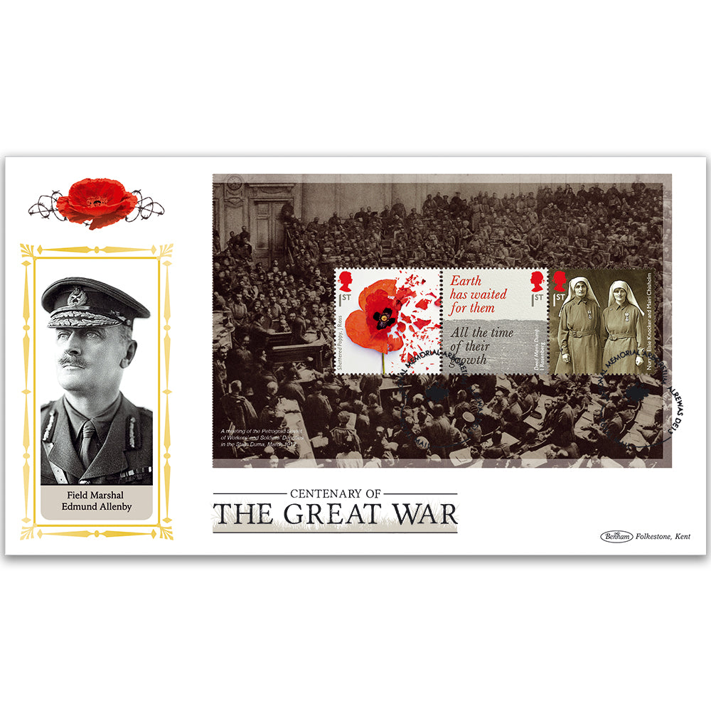 This cover carries an image of Field Marshal Allenby who led the campaign against the Ottoman Empire army in the Middle East and entered Jerusalem on 11 December 1917. The cover bears a National Memorial Aboretum, Alrewas handstamp.