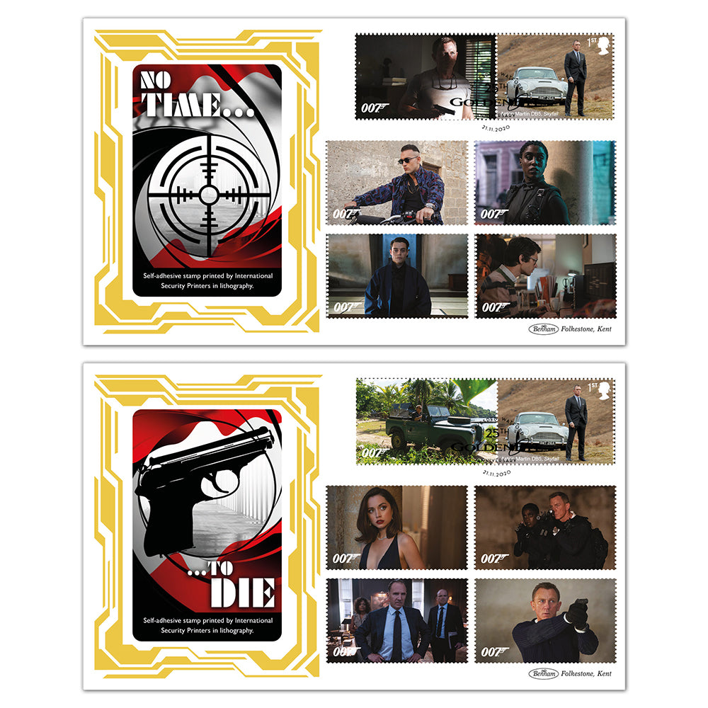 A superb pair of BSSP covers featuring the Royal Mail Collectors' Sheet, issued on 21 November 2020, marking the imminent release of the latest film in the series continuing the thrilling assignments of Ian Fleming's legendary agent as portrayed by Daniel Craig.